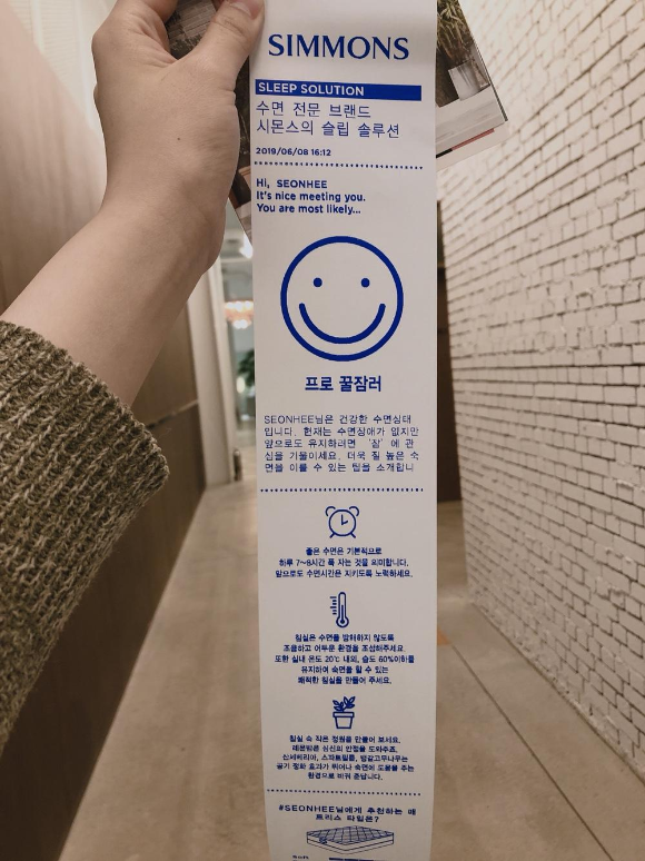 다니다 보면 마지막쯤에 자신의 수면품질에 대해 평가해보고 자신에 맞는 매트리스를 알아볼 수 있다. '소프트-레귤러-하드' 이런 식으로 어떤 매트리스가 맞는지 알려준다. 나는 너무 푹신한 매트리스는 오히려 피로감을 받는 것 같아 약간 딱딱한 매트리스를 선호해왔는데 내 타입에는 푹신한 게 좋다고 한다. 왜? 아무튼 프로 꿀잠러라고 칭찬받으니 기분이 좋다. 프로 꿀잠러라서 자도 자도 꿀잠을 잡니다. 관객들이 직접 참가할 수 있는 재미요소가 있으니 지루하지 않다.