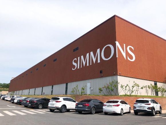 주차는 공장 옆에다 한다. 공장 건물 꺾인 부분에 왜 타입을 걸쳐놨을까? 뭔가 되게 디자인 적이다. 음영에 따른 건물 색도 있어보인다. 다시 보게 된 브랜드 '시몬스'