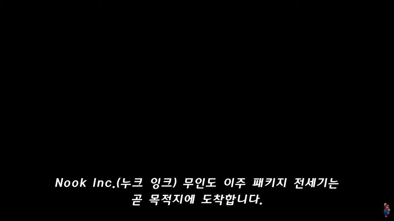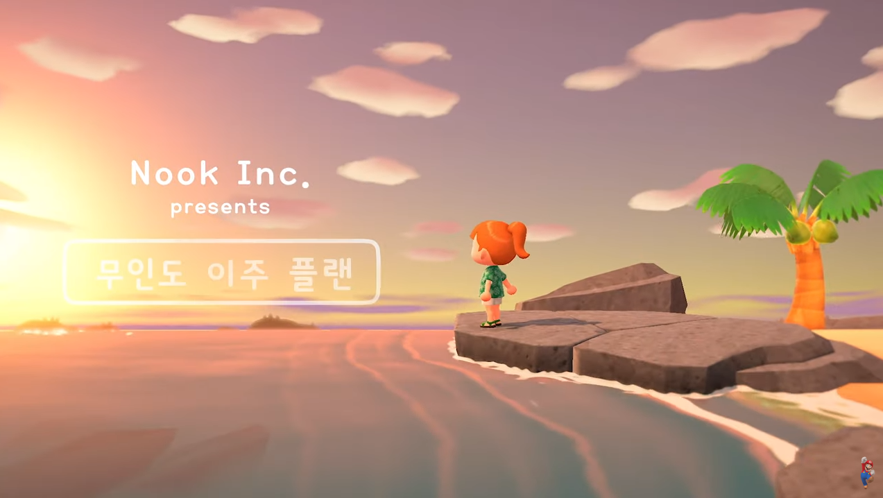 기내방송을 시작으로 동물의 숲 느낌의 브금이 깔린다. 여기서 부터 벌써 설레기 시작한다. 이미 게임 플레이하는 듯 한 느낌!! 이번 시리즈는 다 차려진 동네에 숟가락(?) 얹는 것이 아니라 무인도에서 삶을 개척하는 콘셉트이다. 아, 다 차려진 동네가 아니지. 박물관, 백화점, 신발가게, 클럽 내가 다 차려놓는 거잖아