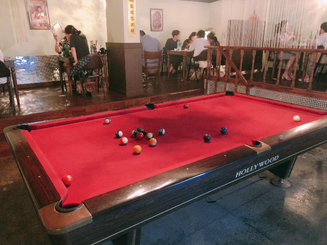 평일인데도 불구하고 테이블 수가 별로 없어서 그런지 앞에 한 팀이 대기하고 있었다. 손님 대부분이 맥주를 마시면서 수다를 떠는 시간을 보내고 있었기 때문에 테이블 회전이 그렇게 빠르지 않았다. 특이하게도 가게 한가운데 포켓볼을 칠 수 있는 공간이 있어서 대기 시간도 길겠다 포켓볼을 치며 기다리기로 했다. 그렇게 포켓볼을 치고 나니 우리 차례가 금방 왔다. 사실 앞 한 팀은 대기 시간이 길어서 포켓볼 자리를 테이블 자리로 대신하는 게 낫지 않겠냐며 툴툴대면서 대기를 포기하고 나갔다..ㅎ