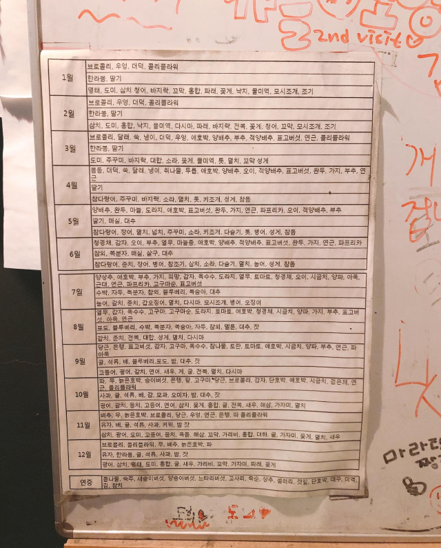 옆에 있던 월에 해당하는 재료들. 왜 있는걸까? 월마다 사용하는 재료가 달라서 그런 걸까?