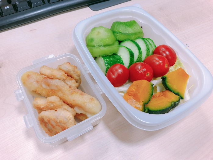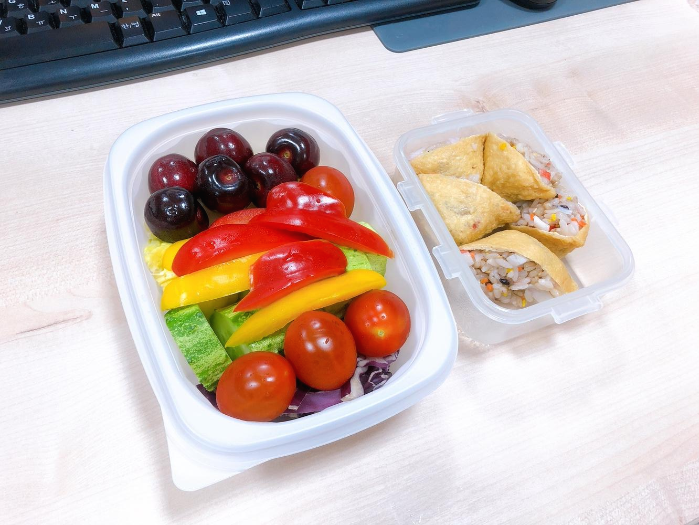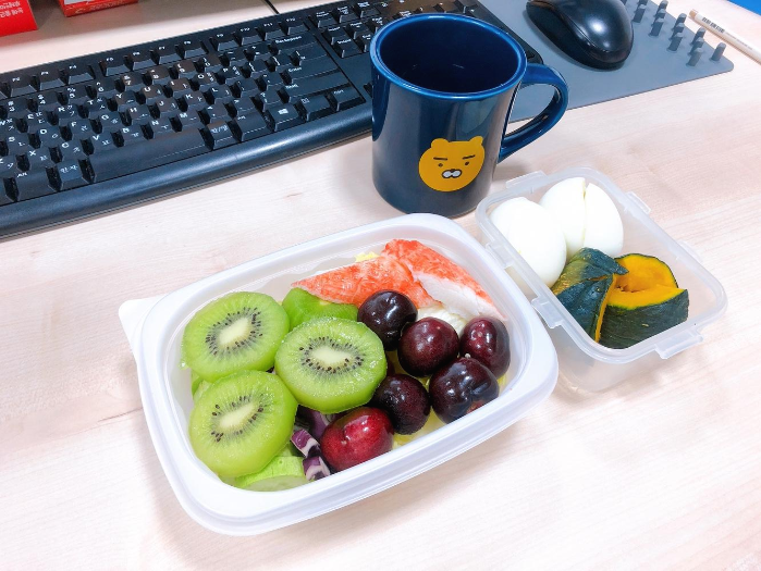 난데없는 점심 도시락 자랑... 앉아서 작업을 하기 때문에 무겁게 먹으면 항상 배에 가스가 차서 불편하고 심하면 통증까지 와서 점심은 가볍게 먹으려고 채소도시락을 싸 갖고 다닙니다.