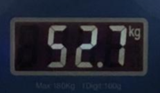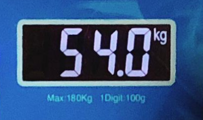 2주 전 몸무게입니다. 우리집 체중계 기준으로 54kg. 아침에 일어나자마자 공복에 재면 53kg까지 내려가기도 했습니다. 참고로 키는 163cm에 근육량 쩔게 없는 체질입니다.