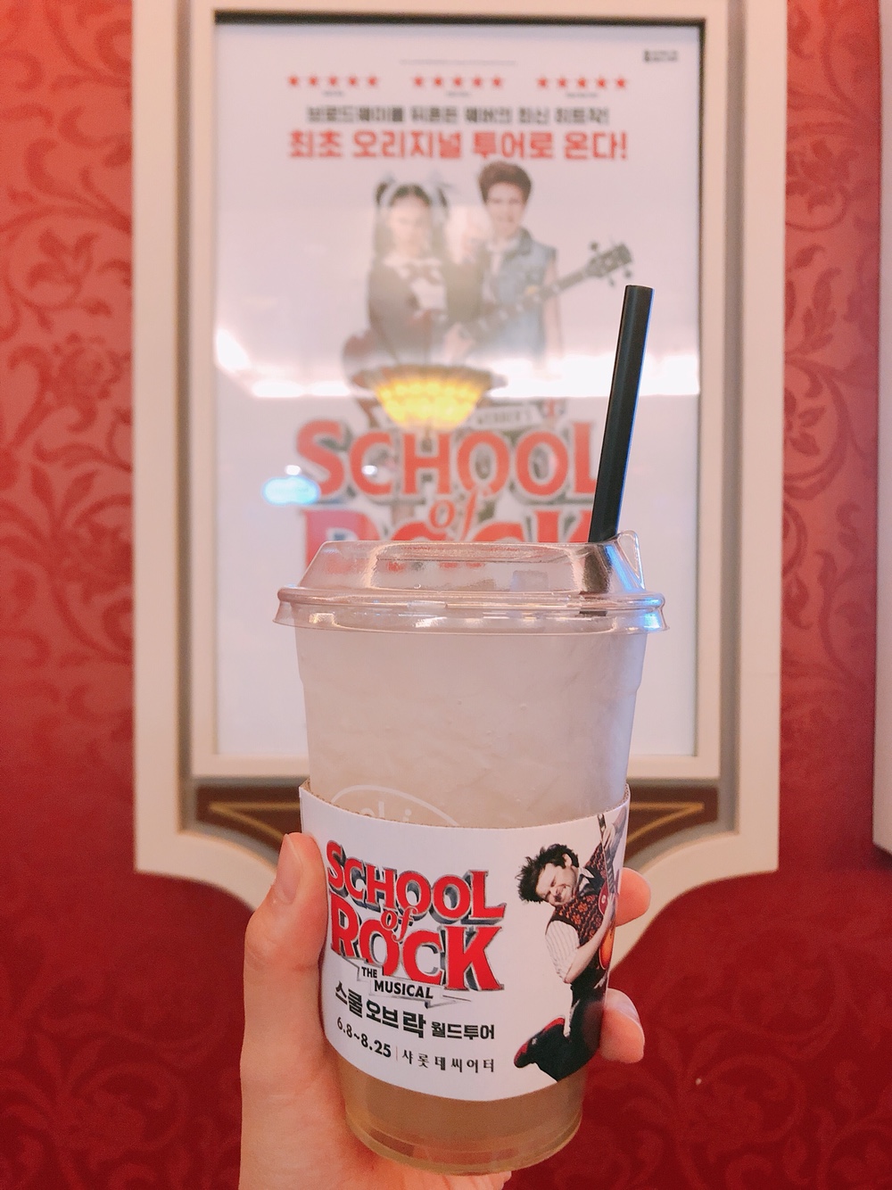 안될 줄 알았는데 음료 들고 들어갈 수 있다. 입장하는 문 바로 앞에 엔젤리너스가 있는데 컵홀더가 스쿨 오브 락이다.