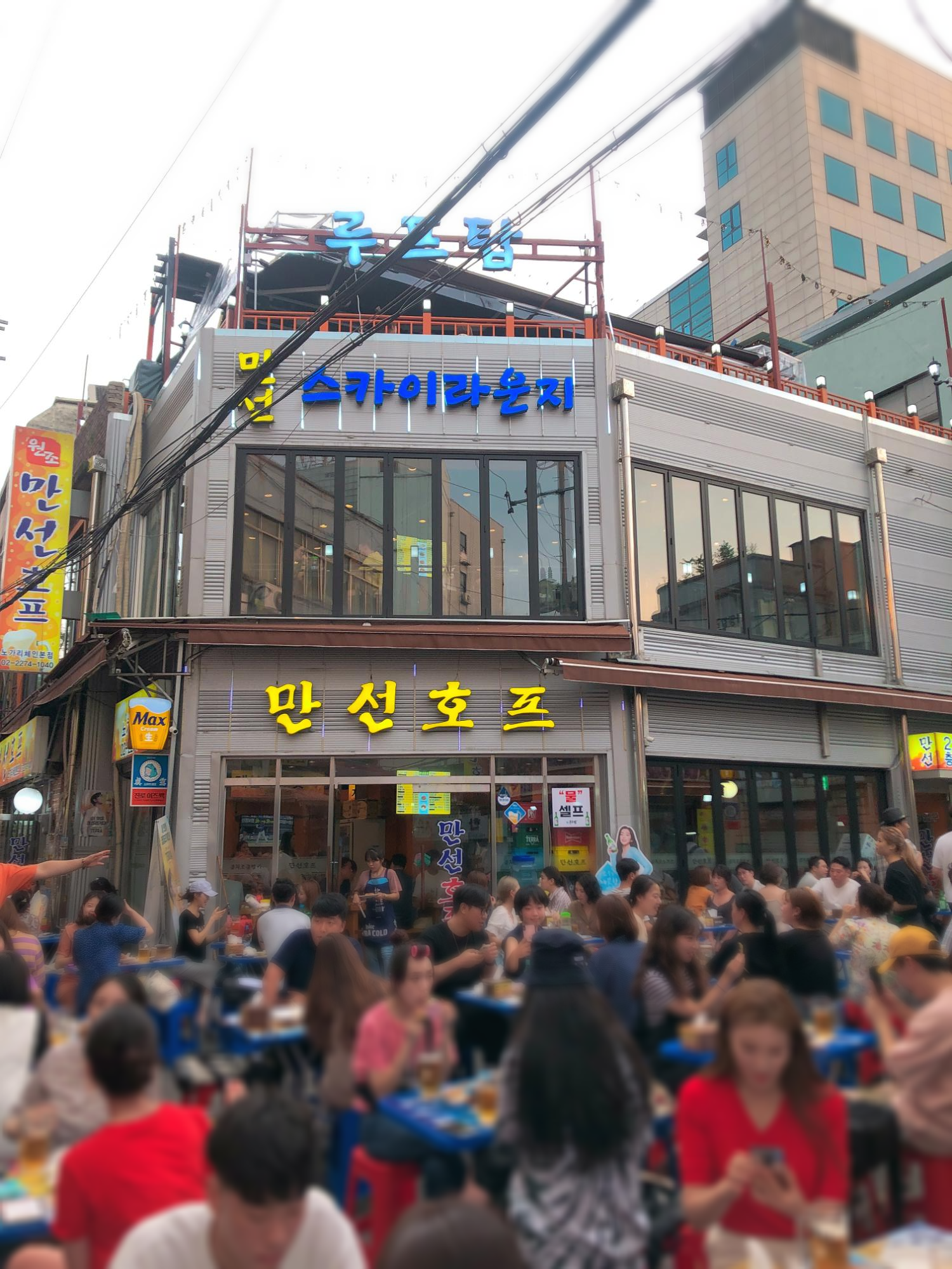 말로만 듣던 힙지로의 만선호프에 찾아갔다. 이제 곧 남자 친구와 1주년이어서 종로 귀금속 상가에서 커플링을 맞추고 을지로로 넘어왔다. 만선호프는 을지로 노가리 골목에 위치해 있다. 골목을 꺾자마자 나오는데 사람들이 우글거려서 놀랐다. 다행히 좀 일찍 찾아와서 자리에 앉을 수 있었다. 주변에 만선호프가 아닌 테이블도 있으니 만선호프를 찾아왔다면 꼭 잘 알아보고 만선호프 테이블에 앉자. (처음에 아무 데나 앉을 뻔했다)