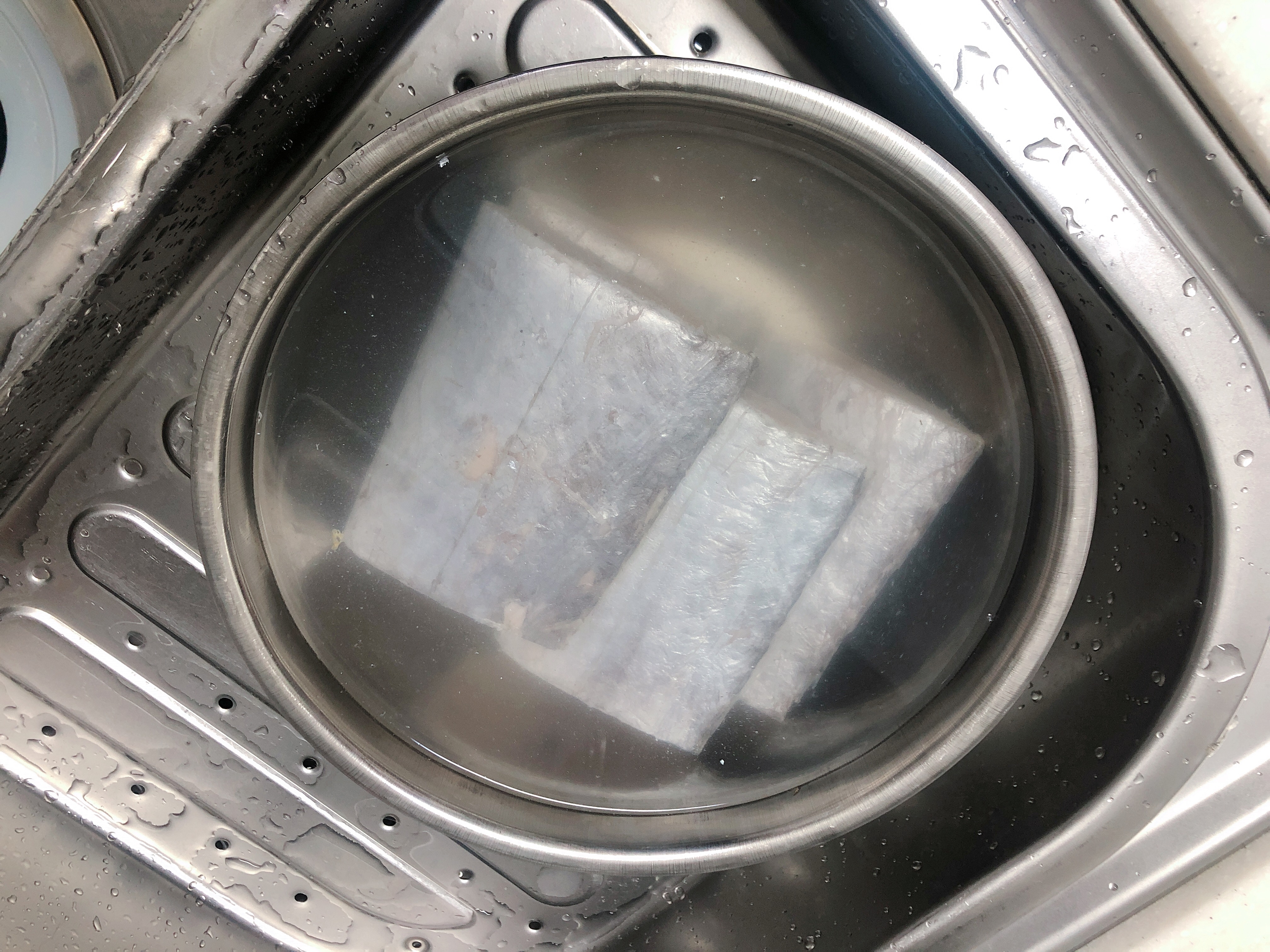 혹시 몰라서 꺼내서 물에 좀 담가뒀습니다. 두툼한 부위만 잘 골라져 있죠? 문득 생각났습니다. 이 두툼한 부위 이외의 부위는 다들 어디로 가는 걸까. 버리는 걸까?