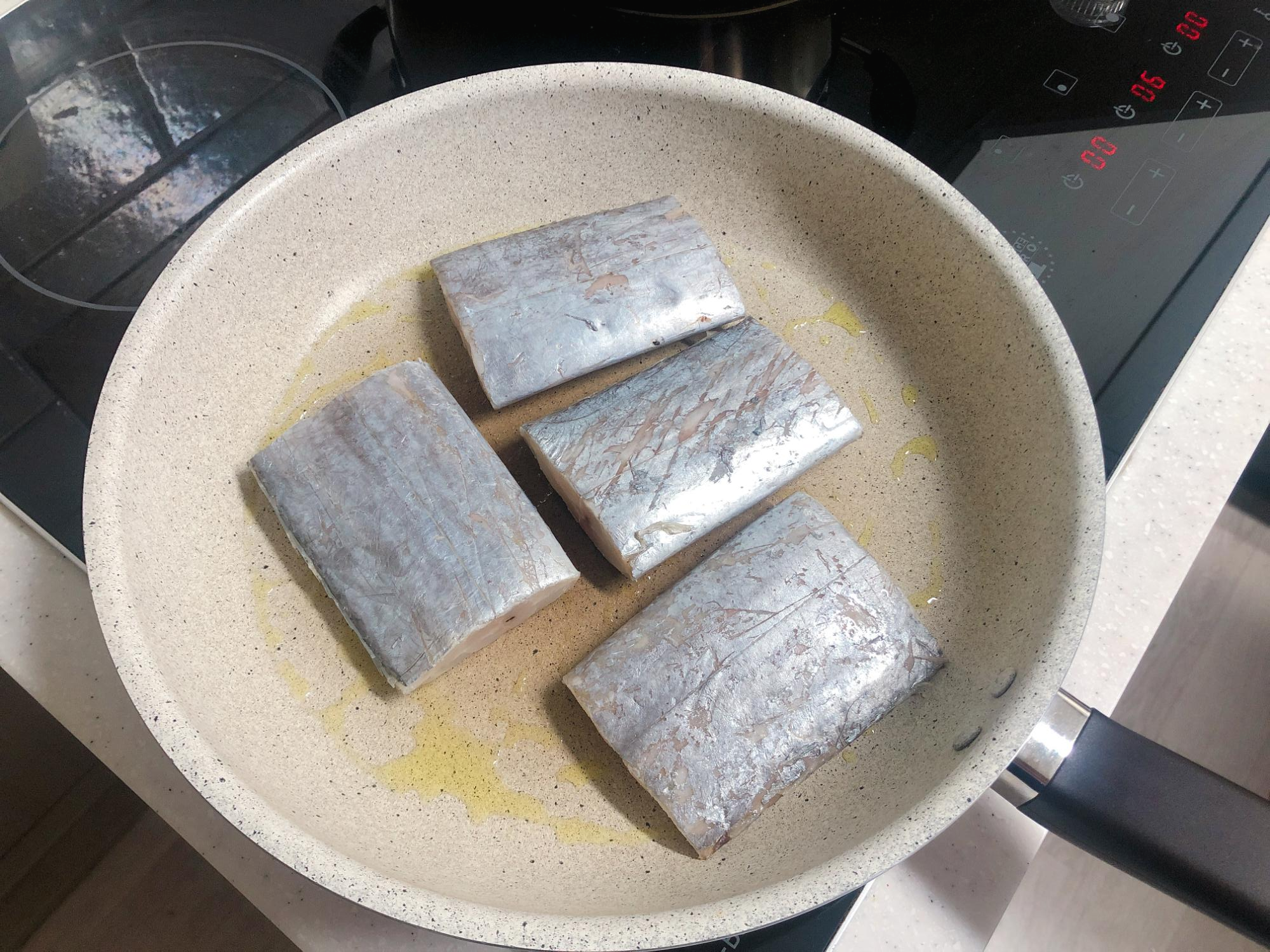 두툼한 손질 갈치를 올려줍니다. 은색의 두툼한 갈치가 영롱해 보입니다. 참고로 두 개 까서 구웠습니다. 엄마 꺼 2토막 내 것 2토막.. 아, 구울 때 칼집을 좀 주었더라면 사진이 좀 더 이쁘게 나왔을 텐데!